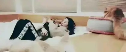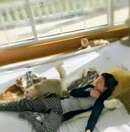 猫咪趴沙发、狗狗跟前跟后,那画面柔得像滤镜一样,让人一下子就理解她为什么那么爱宅家了。